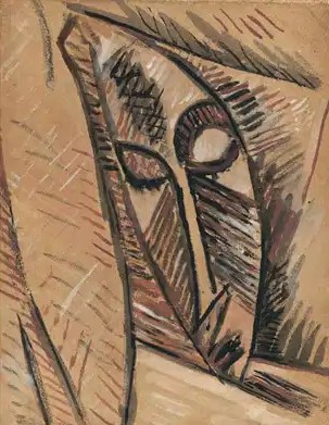 Left: Pablo Picasso, Study for the Head of Nude with Drapery, 1907, Watercolor and gouache on Brown paper, 31 x 24.5 cm (Museo Nacional Thyssen-Bornemisza, Madrid)
